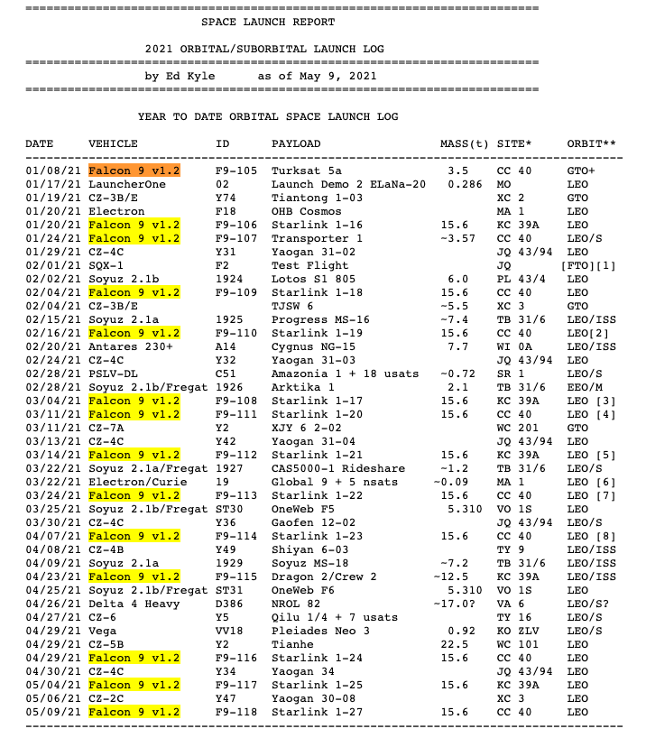 So long as the Falcons remain in service, I think SpaceX will continue to play those particular cards close to its vest. Once the Falcons are retired, though, we may see at least some cumulative numbers emerge. A book about the service history of the Falcons would be a good project for someone like Eric Berger.