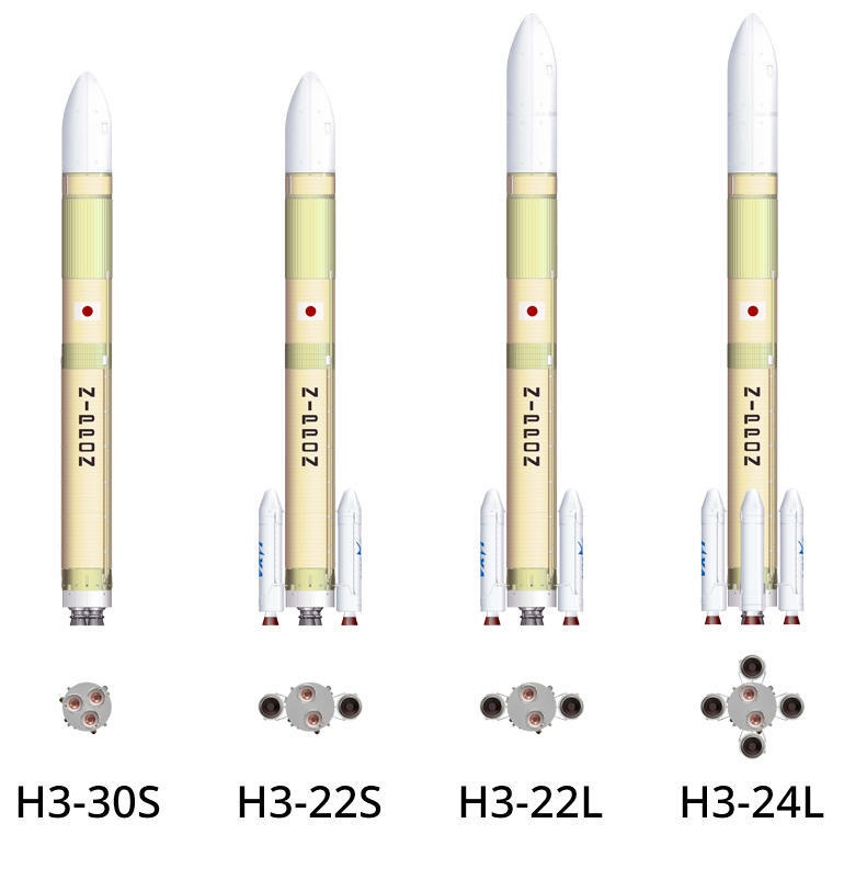 Various configurations of JAXA H3 launch vehicle. A three core version might be used for lunar cargo missions to the Gateway space station.