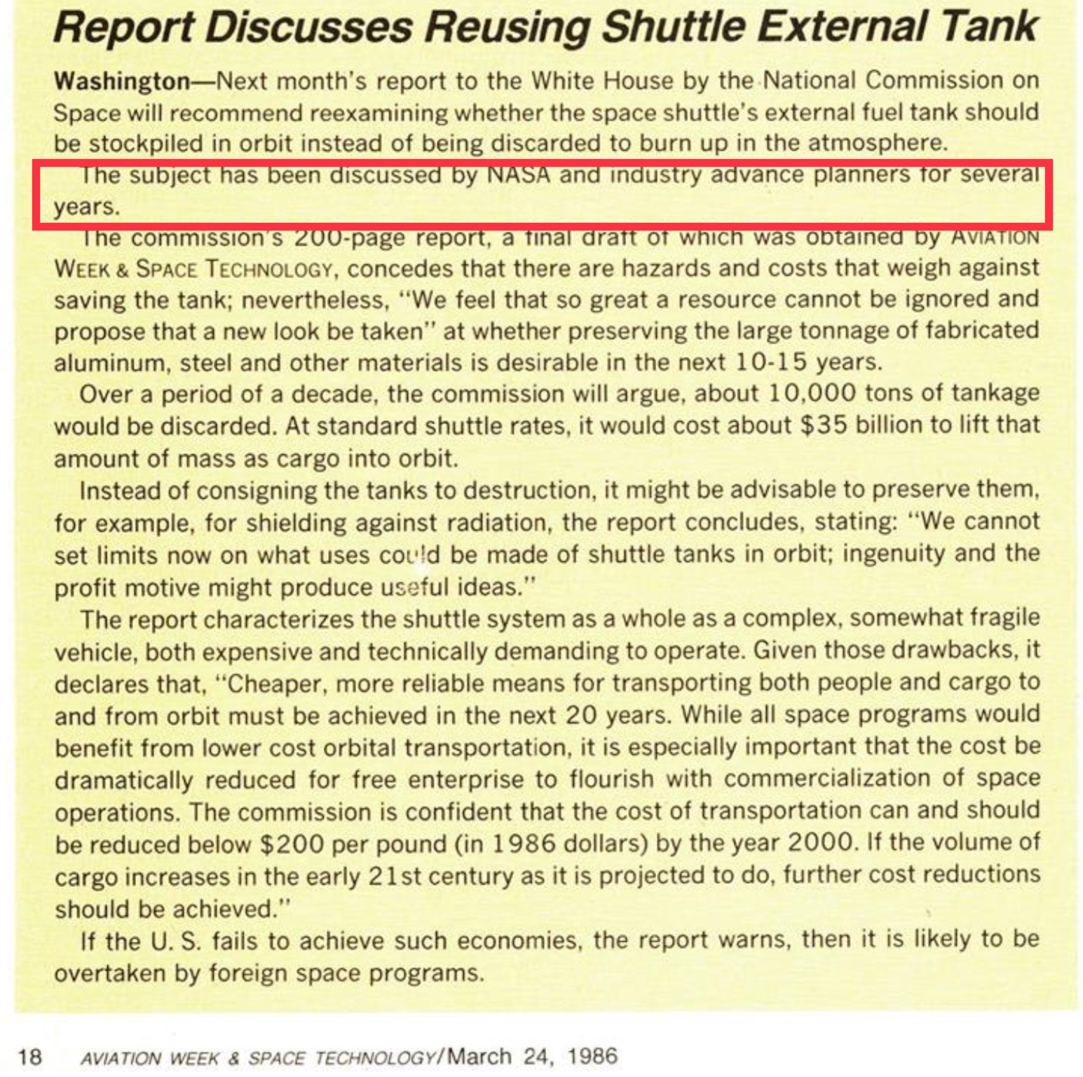 Asked why NASA did not incorporate the tanks into the design of its own station, NASA’s Culbertson said: “We don’t have any real need for that kind of volume.” He added that the tanks are so massive that they could cause problems in controlling the kind of station NASA wants to build.