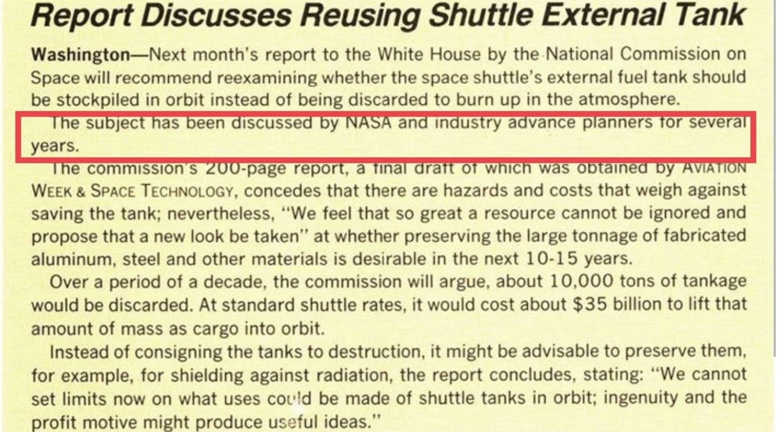 They -meaning NASA, issued $ millions in study contracts on ET use on orbit, including the UCAR studies.